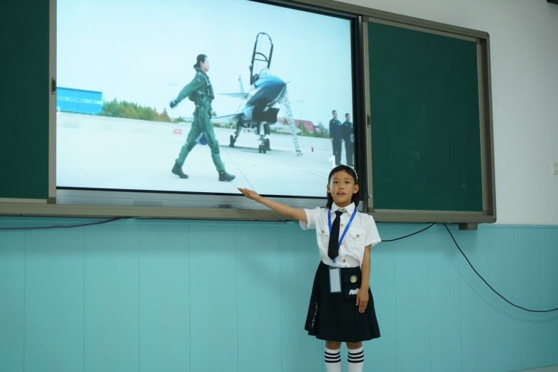 活动现场设置了多个特色区域,其中解说口才区尤为亮眼。学生们化身 “小小航空讲解员”,用稚嫩却专业的声音,向大家介绍飞机的发展史、飞行原理等知识。